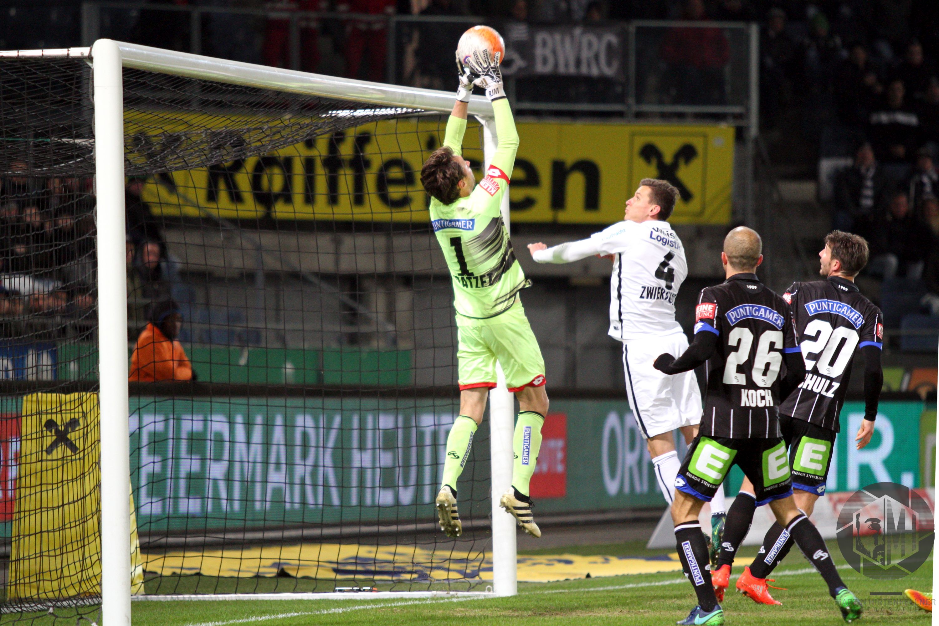 „In so einem Spiel muss man einfach das erste Tor machen“, gab Trainer Franco Foda später zu Protokoll. Klingt simpel, ist aber keine echte Deklaration. Auch wenn die ersten beiden Torchancen im Spiel Sturm gehörten: Zuerst ist es Marc Schmerböck, der einen beinahe aussichtslos anmutenden Ball noch erläuft und ihn auf Deni Alars Haupt zirkelt. Der Zeltweger kann aber keinen Druck aufbauen. Dann Fabian Koch, dessen Nachschuss geblockt wird und über Umwege zu Bright Edomwonyi gelangt, der Nigerianer outet sich aber auch als Freund der gemäßigten Mitte. So hat der andere Bundesliga-Torhüter aus Leoben, Andreas Leitner, beide Male keine Mühe, das vom Cheftrainer erhoffte schnelle Führungstor zu verhindern.