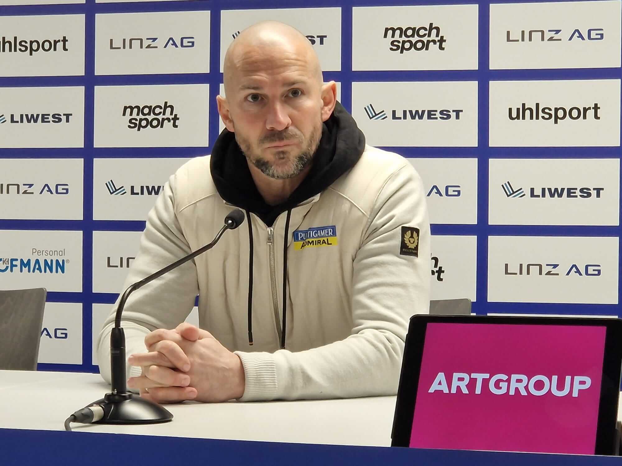 Cheftrainer Christian Ilzer bei der Pressekonferenz nach dem Unentschieden in Linz. – © SturmNetz