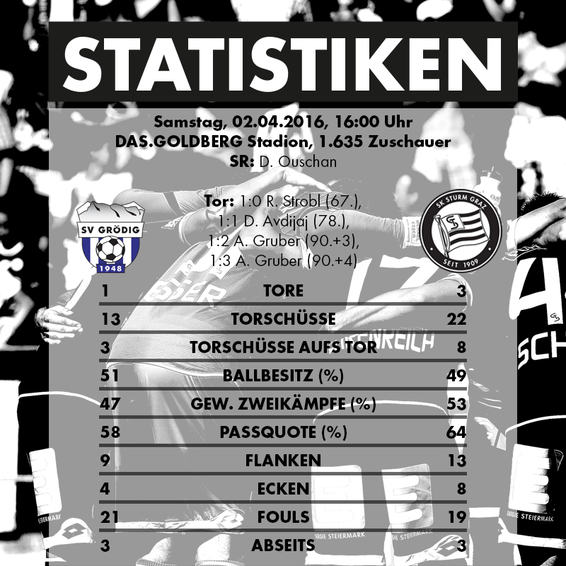 …würde Sturms Medienabteilung jetzt wohl sagen. Die Grazer fahren einen immens wichtigen Auswärtssieg ein, nachdem Grödig eigentlich schon auf Siegeskurs war. Während Sturm den hinteren Rängen zumindest vorerst den Rücken zukehrt und wieder Richtung Europa schielen darf, wird es für Grödig nun richtig eng. Gut möglich, dass die Kicker aus der Steiermark dem Anblick des Untersberg für längere Zeit lebewohl sagen müssen. Hauptsächlich dank Donis Avdijaj und Andreas Gruber, die gemeinsam fünf Scorerpunkte verbuchen konnten. Ob die Trendwende nun tatsächlich gelungen ist, wird sich im nächsten Heimspiel gegen Altach zeigen.